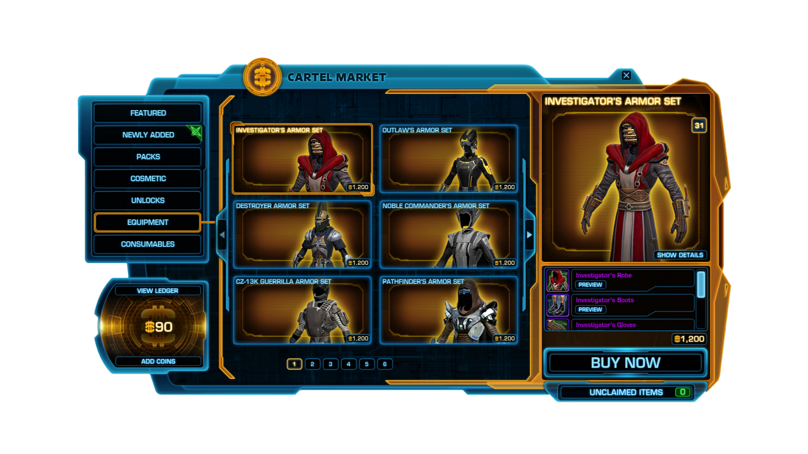 I'm not too sure if I like so many items being strictly random access via the Cartel Packs. I guess we're all going to end up with 5 or 6 mounts we never use, or we'll be able to sell the items on the Galactic Trade Market for inagme credits. I didn't experience any duplicate items in all the packs I bought, but I'm sure that it will happen for some unlucky players unless Bioware have the randomness well planned.